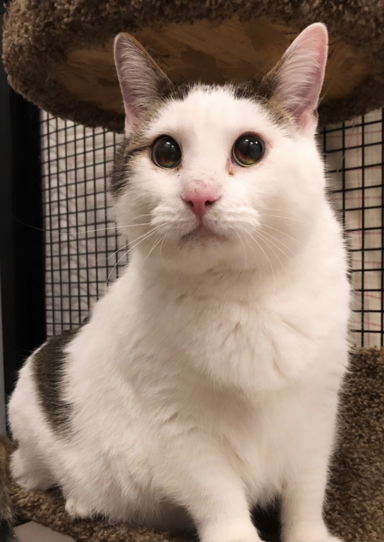 Rico is a white, short-haired kitty with tabby patches. He came into the care of the Markham Cat Adoption and Education Centre at eight years old, and blind.