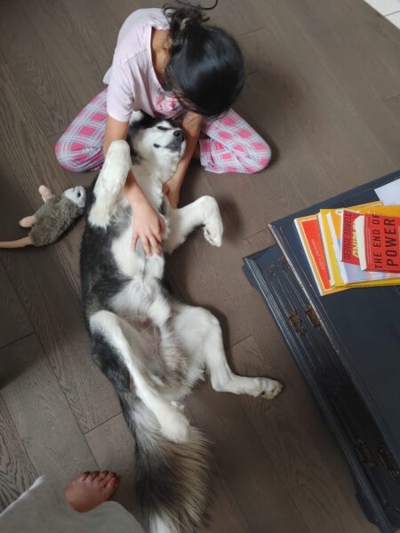 “We all adore Duke,” Romy says. “He is shy, but he loves attention.”