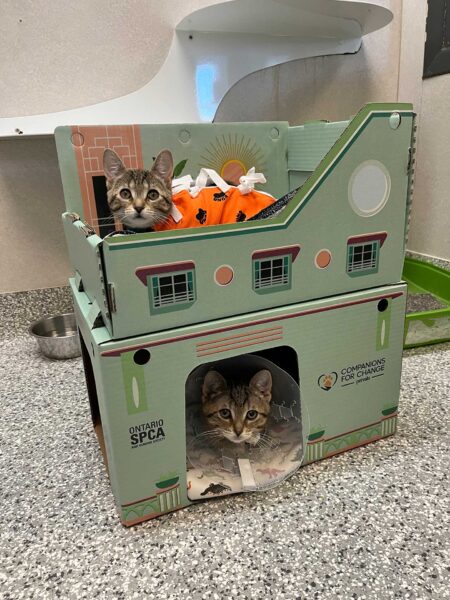 “The Ontario SPCA strives to ensure that each animal has access to the most calming environment possible while in our care and that adopters are set up for a smooth transition as they welcome a new animal into their home,” says Tracy McElman, Provincial Manager, Community Programming & Animal Centre Services with the Ontario SPCA and Humane Society. “Cat cabins are a routine part of our enrichment program, but these fun new designs are anything but ordinary.”