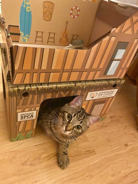 Interested in adopting? Visit ontariospca.ca/adopt to see animals waiting for loving homes. Your new best friend could be there, waiting for you in their new cat cabin – curled up by the fire in their meow-tain ski chalet, making waves on the beach, enjoying a siesta under a string of tiki lights, or waiting to sail off into the sunset.