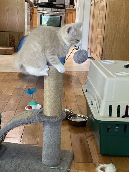 Upon examination, Dr. Seely established that this wee kitten was suffering from a poorly moving pelvis and lower spine. After an initial adjustment, there was an immediate improvement in his gait. Dr. Seely continued to see Charleston every other week, and after a few visits for chiropractic care, he was back on track and able to keep up with his littermates.