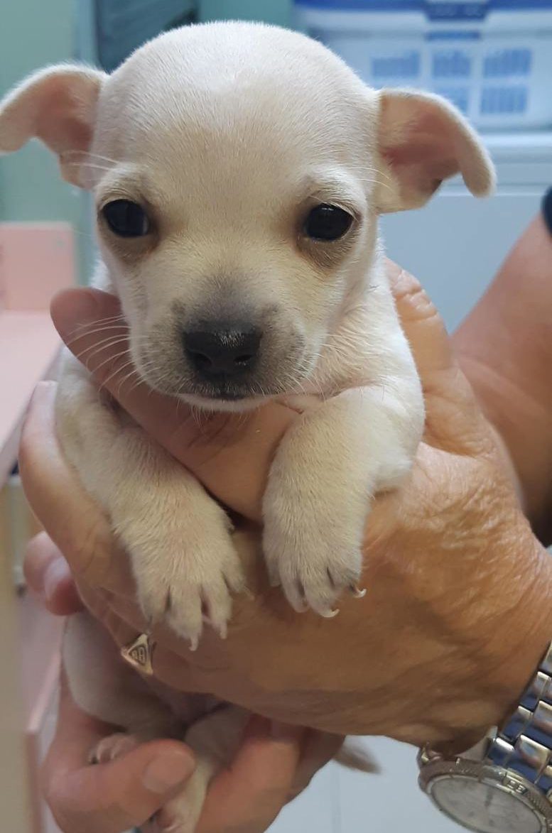 We weren’t sure how this pint-size Chihuahua-type pup ended up on the side of a busy road, but we were relieved to discover he didn’t have any injuries. Working together with police, we got this little guy to a local veterinarian to be checked out. The examination revealed that, despite the ordeal, this little guy was no worse for wear.