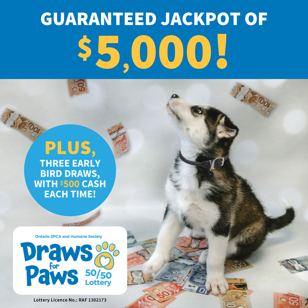 Get ready for your chance to WIN the Ontario SPCA Draws for Paws 50/50 Lottery!