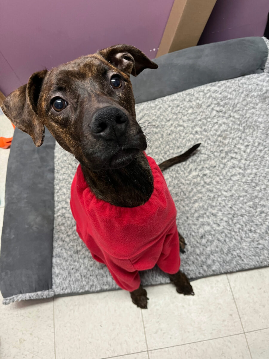 Severely emaciated and suffering from wounds on his legs and ears, Twix arrived at the Stormont, Dundas & Glengarry Animal Centre in desperate need of medical care, proper nutrition, and emotional rehabilitation. Weighing just 15 kg, significantly under the estimated healthy weight of 25kg for his size, Twix’s body condition score was a critical 1 out of 5 – quite literally skin and bones – when he arrived at the animal centre. Under careful supervision, Twix has been following a strict refeeding protocol to prevent refeeding syndrome, a potentially life-threatening condition. Thanks to the dedication of his caregivers, he is making steady progress and slowly gaining weight.