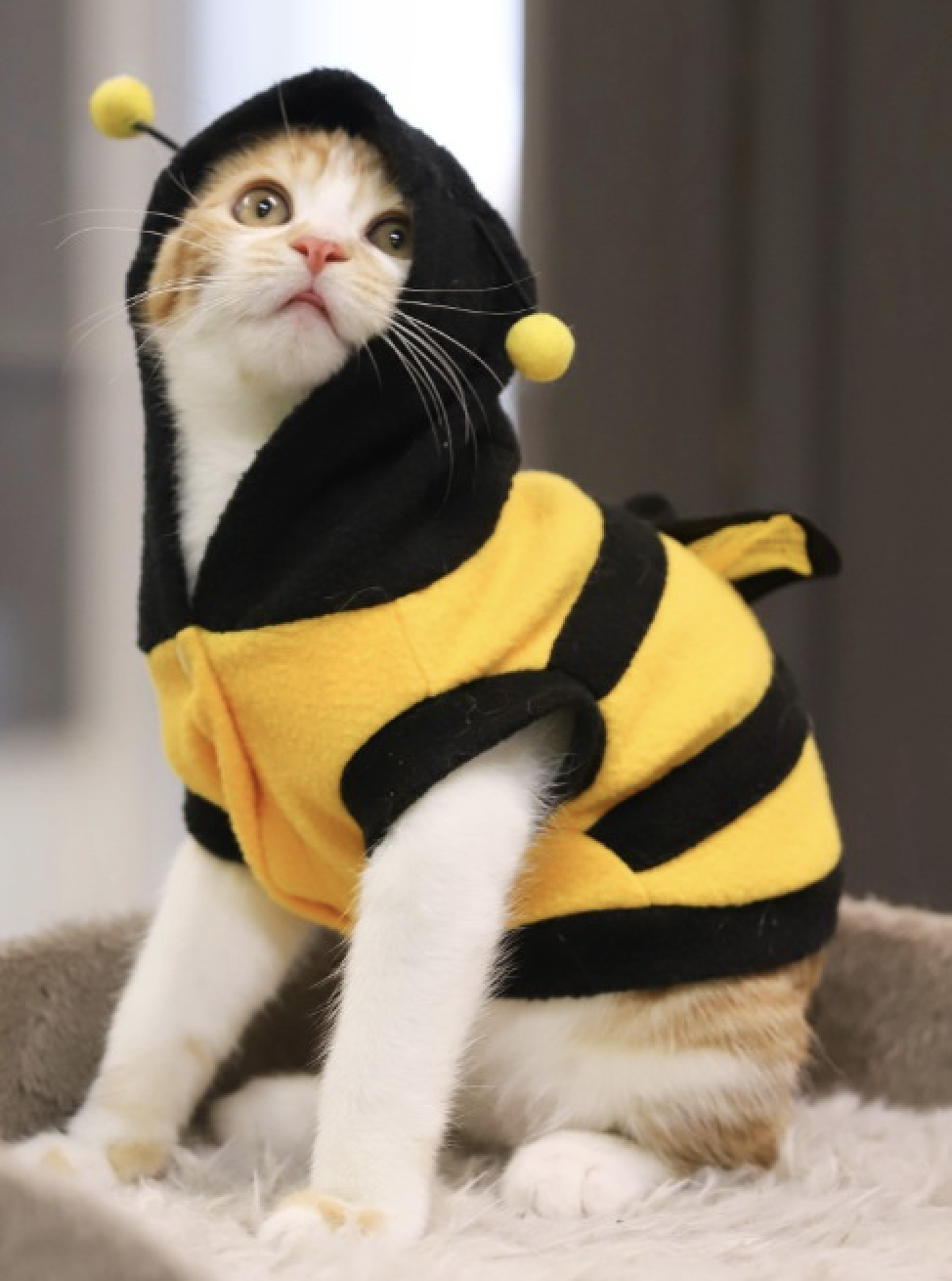 Dressing up your pet in a costume can be fun, but it’s not for every animal. When having them try on costumes, be sure to watch for changes in your furry friend’s body language. Signs they are uncomfortable may include having their head and tail down or attempting to remove the costume by pawing at it.