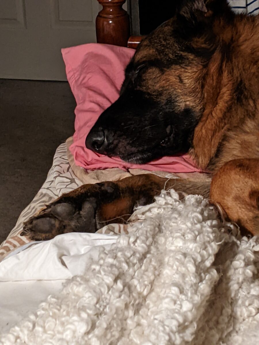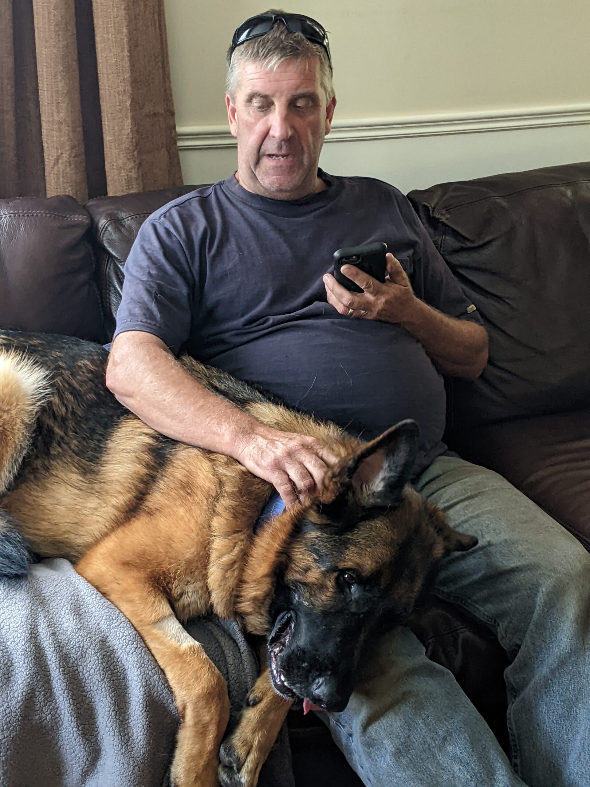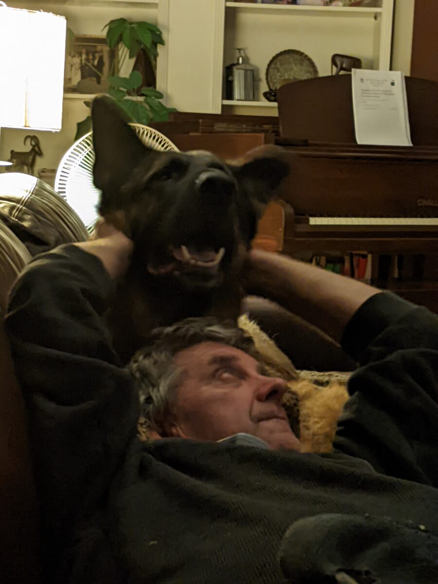“As soon as Dave came in, Vulcan acted like, ‘Here’s my person,’ and immediately jumped on the couch and put his head on his lap,” Alison says, recalling when Vulcan met her husband for the first time.