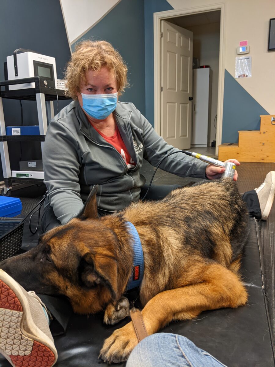 “To really understand hip dysplasia, it’s important to know that the hip joint functions as a ball and socket,” says Mags McLarty, Registered Veterinary Technician at the Lennox & Addington Animal Centre in Napanee. “With hip dysplasia, the hip bone (socket) can erode, so the leg bone (femur – the ‘ball’) that’s connected to the hip joint isn’t moving as smoothly as it should, and the two bones rub or grind together. With larger breed dogs, they have a lot of weight to bear, and that’s what makes this condition so painful.”