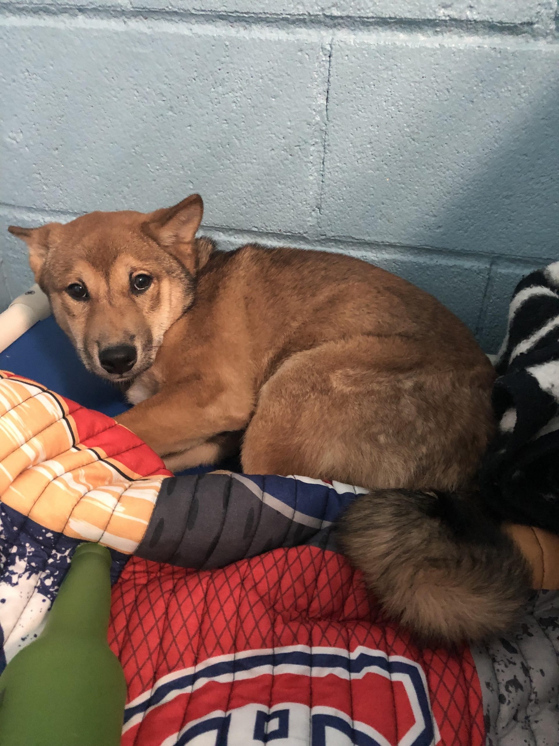 Bandit wasn’t thriving in an animal centre environment. To help him on his path to rehabilitation, he was placed in a foster home. It took more than a month of love, patience and intensive work to get him to come out of his shell.