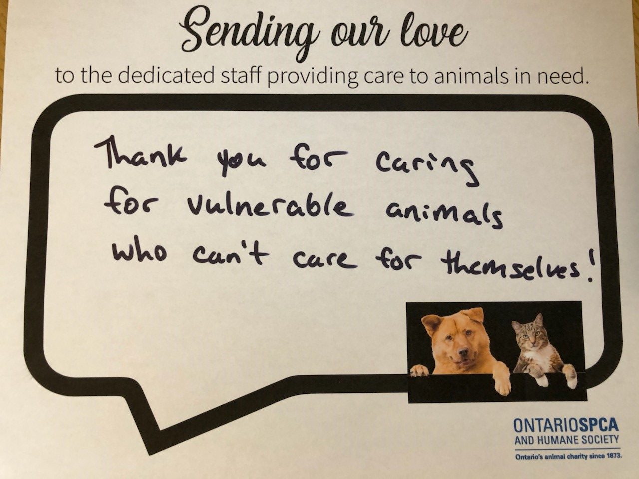 We need your help to send positive vibes to animals waiting in our care, and the dedicated animal centre workers caring for them. Take a picture of yourself holding up your message and use #ThinkPawsitive to be featured in our gallery. We’ll share your messages with our staff and animals!